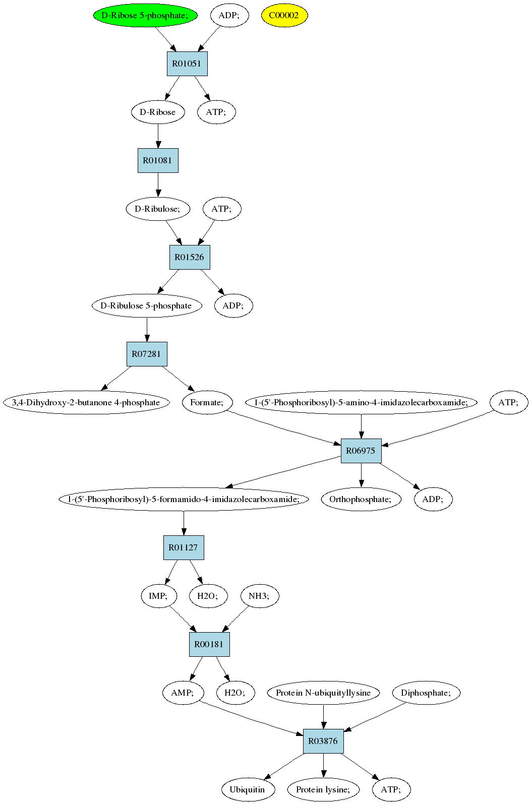 | RP10097 | R06975 | 0 | 1-(5'-Phosphoribosyl)-5-amino-4-imidazolecarboxamide; + Formate; + ATP; <=> 1-(5'-Phosphoribosyl)-5-formamido-4-imidazolecarboxamide; + Orthophosphate; + ADP; |