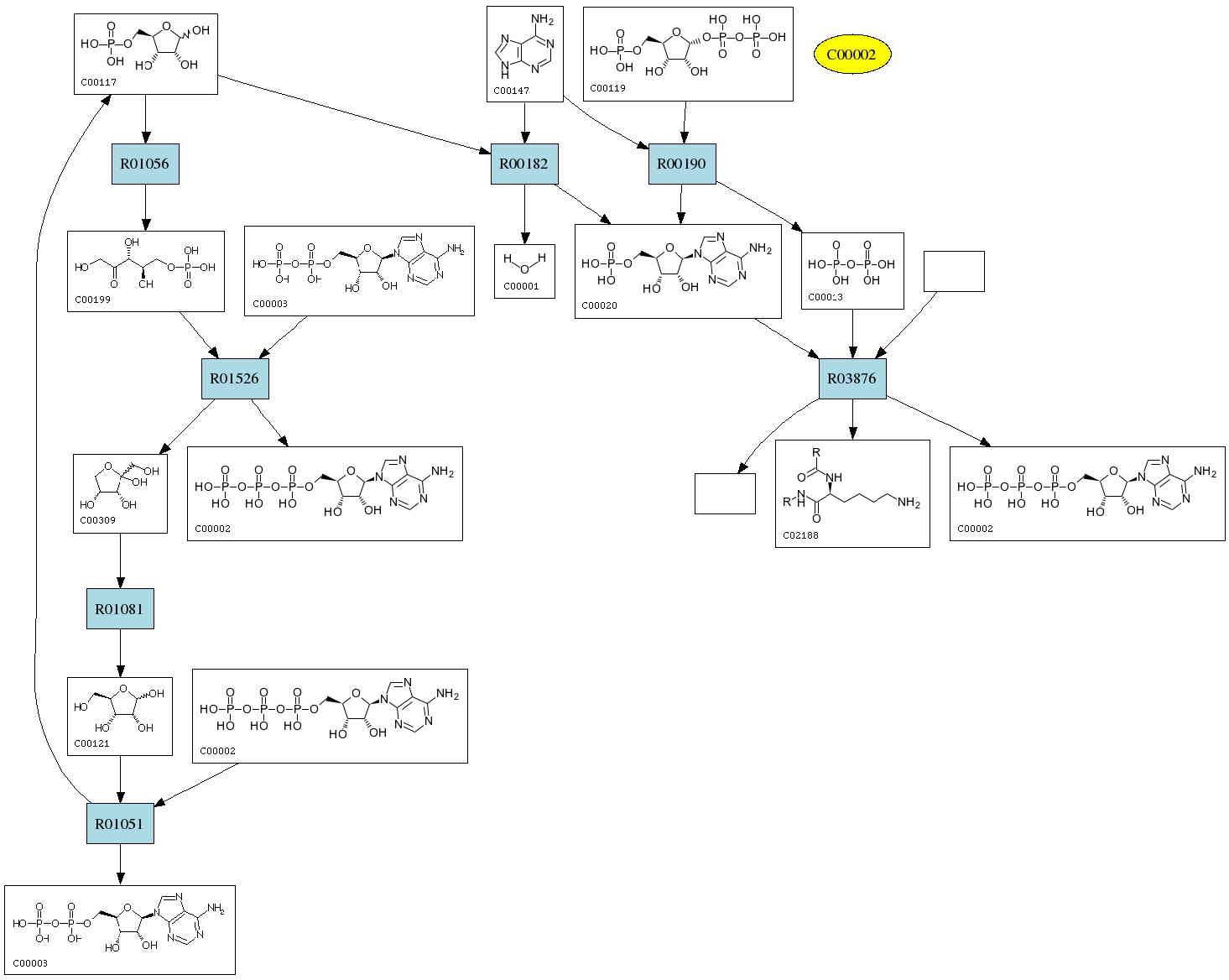 | RP04030 | R00182 | 0 | AMP; + H2O; <=> D-Ribose 5-phosphate; + Adenine; |