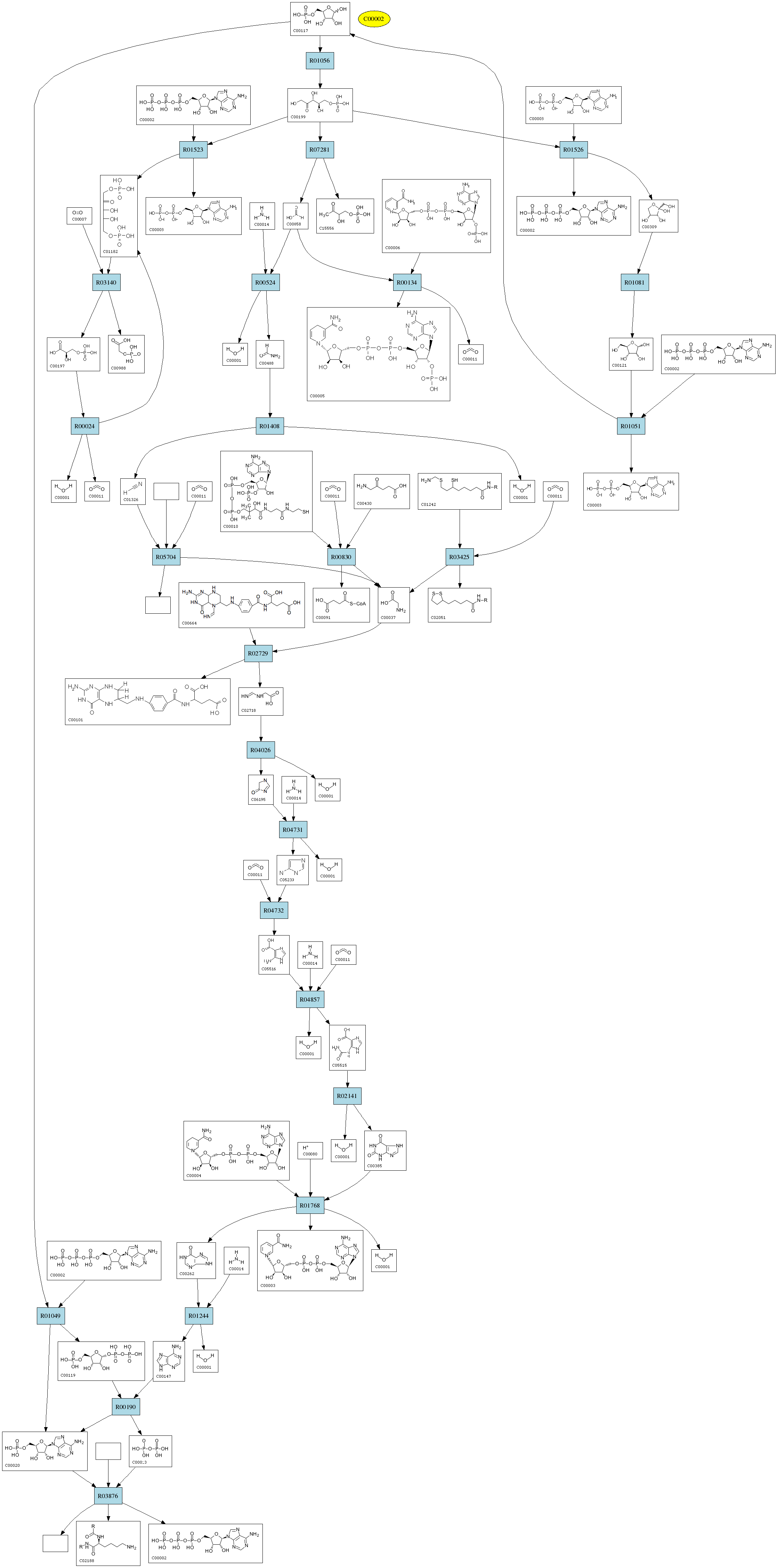 | RP10839 | R07281 | 0 | D-Ribulose 5-phosphate <=> 3,4-Dihydroxy-2-butanone 4-phosphate + Formate; |