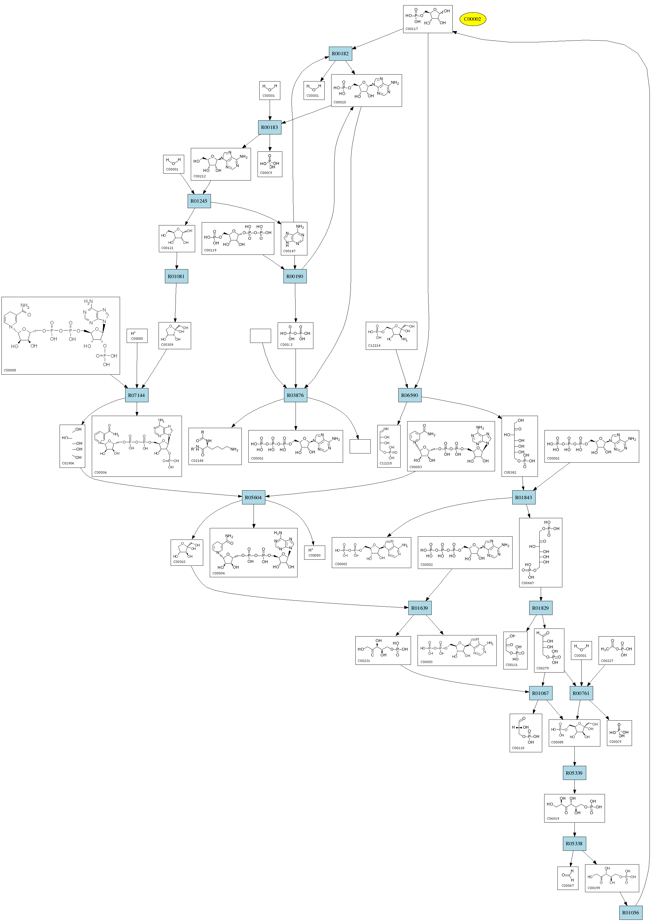 | RP01385 | R01245 | 0 | Adenosine + H2O; <=> D-Ribose + Adenine; |
