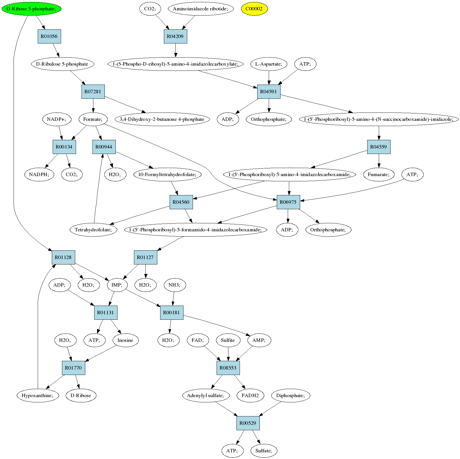 | RP01319 | R01127 | 0 | H2O; + IMP; <=> 1-(5'-Phosphoribosyl)-5-formamido-4-imidazolecarboxamide; |