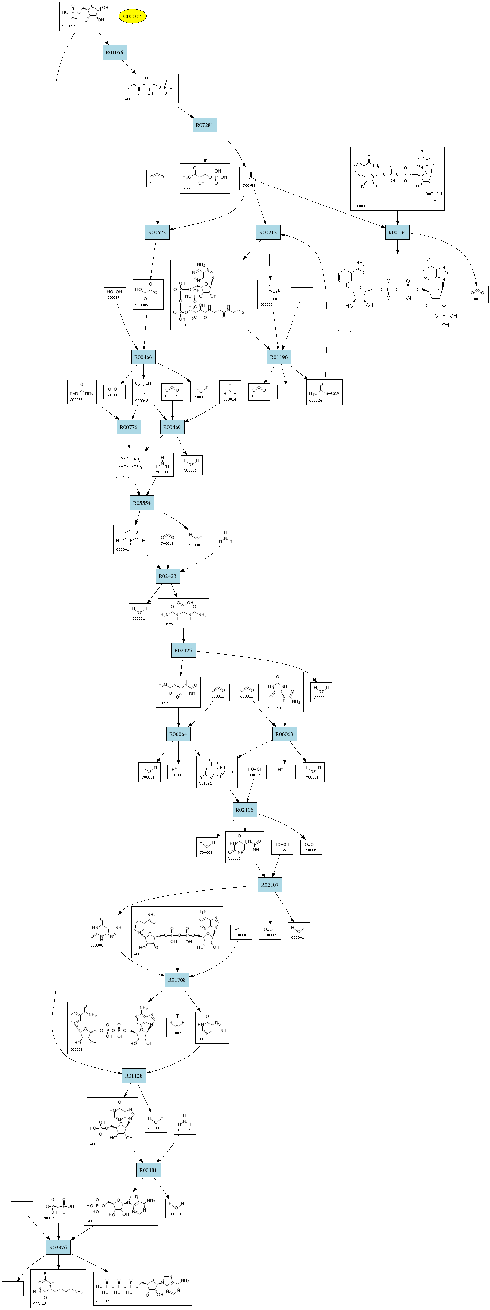 | RP10839 | R07281 | 0 | D-Ribulose 5-phosphate <=> 3,4-Dihydroxy-2-butanone 4-phosphate + Formate; |
