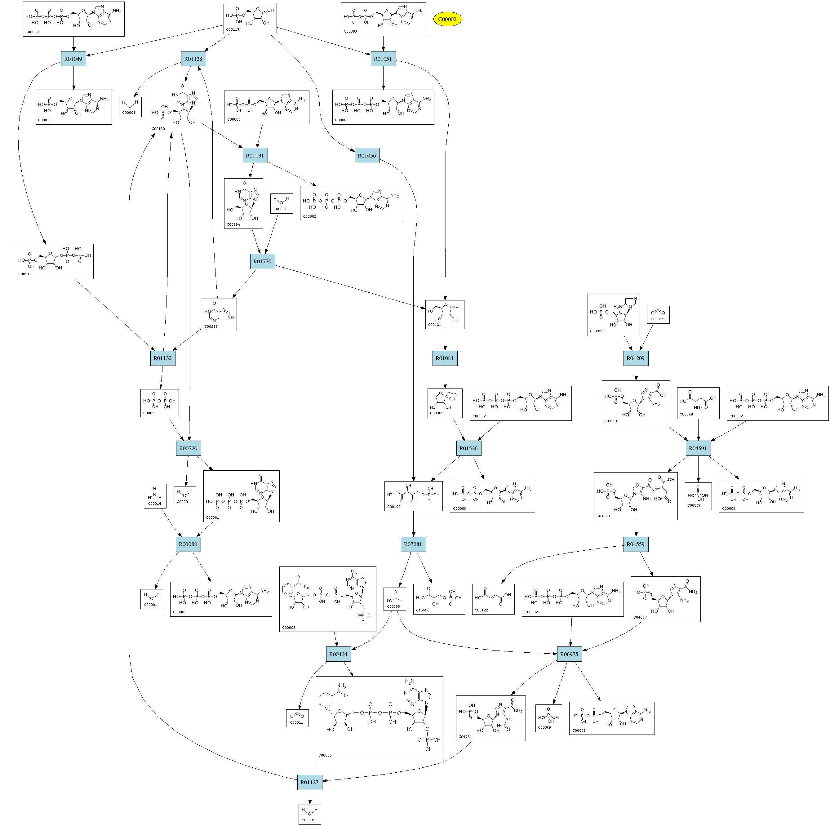 | RP01319 | R01127 | 0 | H2O; + IMP; <=> 1-(5'-Phosphoribosyl)-5-formamido-4-imidazolecarboxamide; |