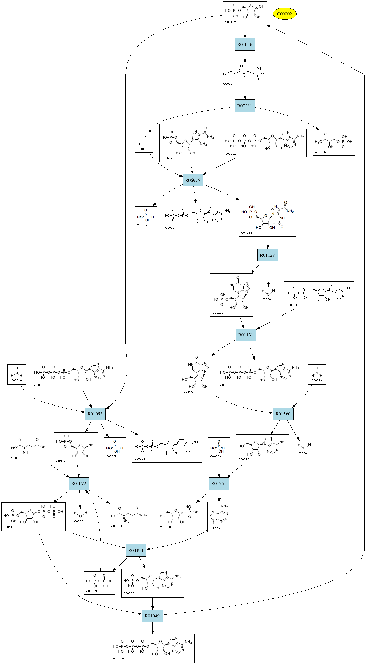 | RP01319 | R01127 | 0 | H2O; + IMP; <=> 1-(5'-Phosphoribosyl)-5-formamido-4-imidazolecarboxamide; |