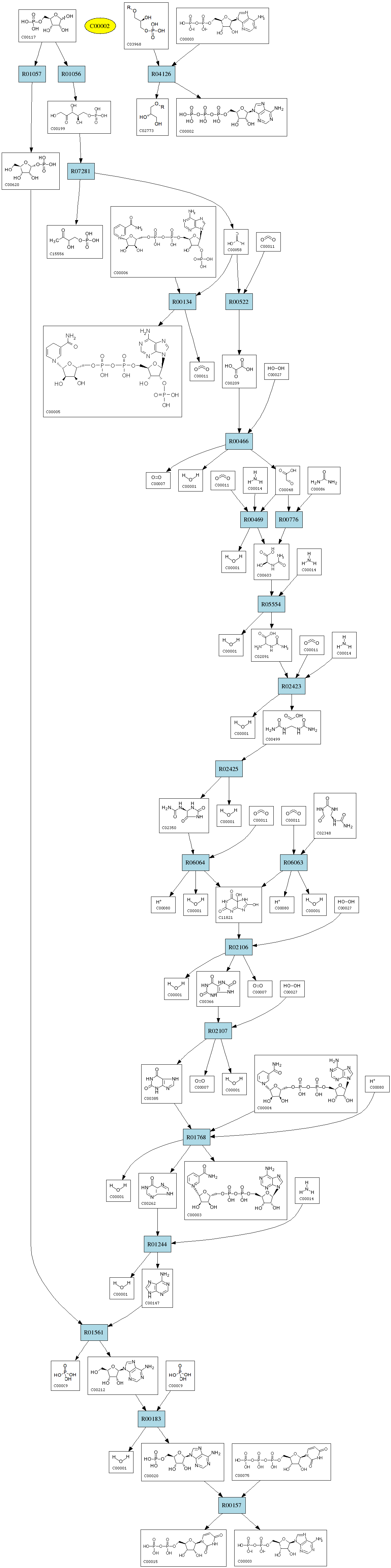 | RP11016 | R01561 | 0 | Adenosine + Orthophosphate; <=> alpha-D-Ribose 1-phosphate; + Adenine; |