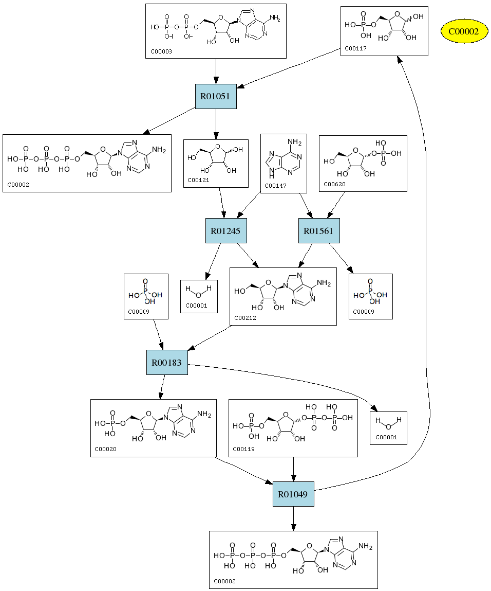 | RP01385 | R01245 | 0 | Adenosine + H2O; <=> D-Ribose + Adenine; |