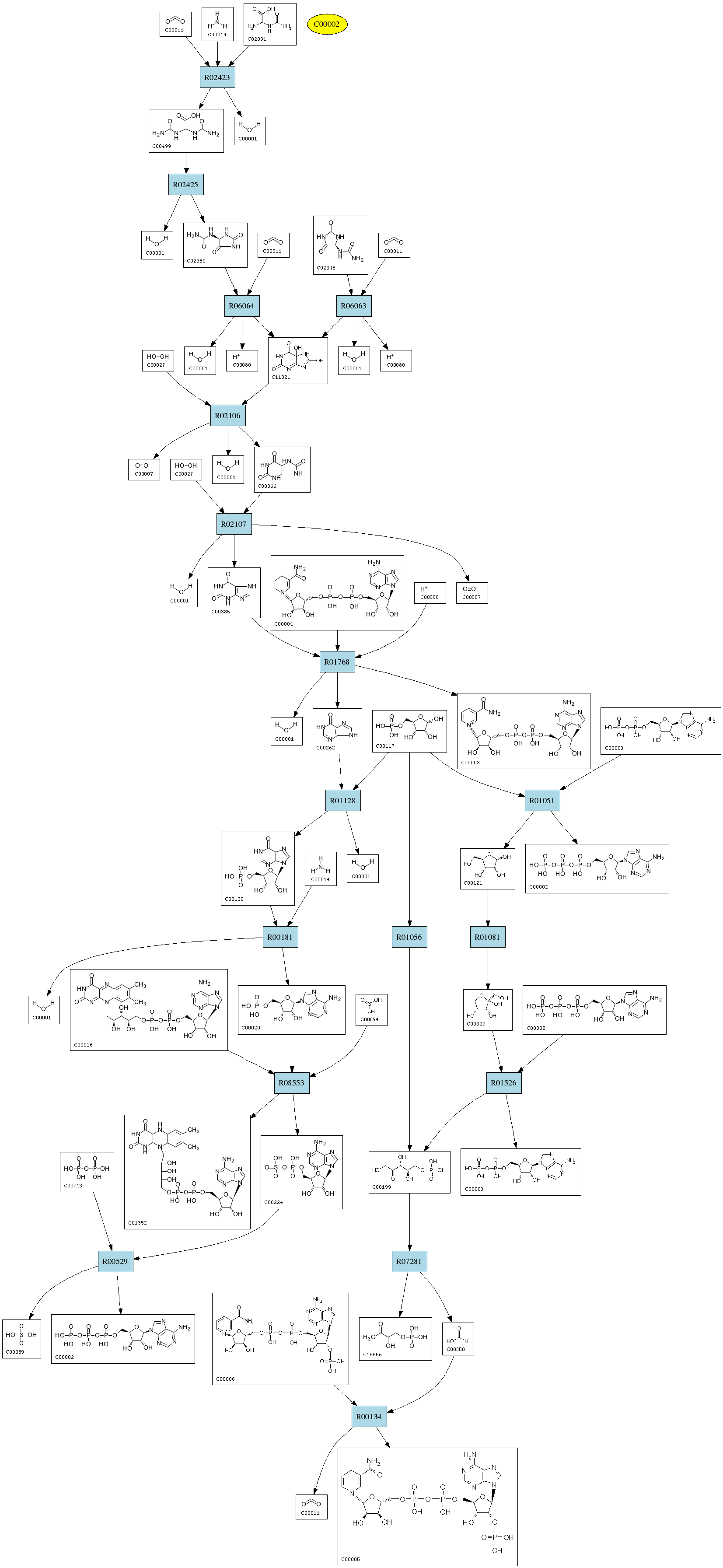 | RP10839 | R07281 | 0 | D-Ribulose 5-phosphate <=> 3,4-Dihydroxy-2-butanone 4-phosphate + Formate; |