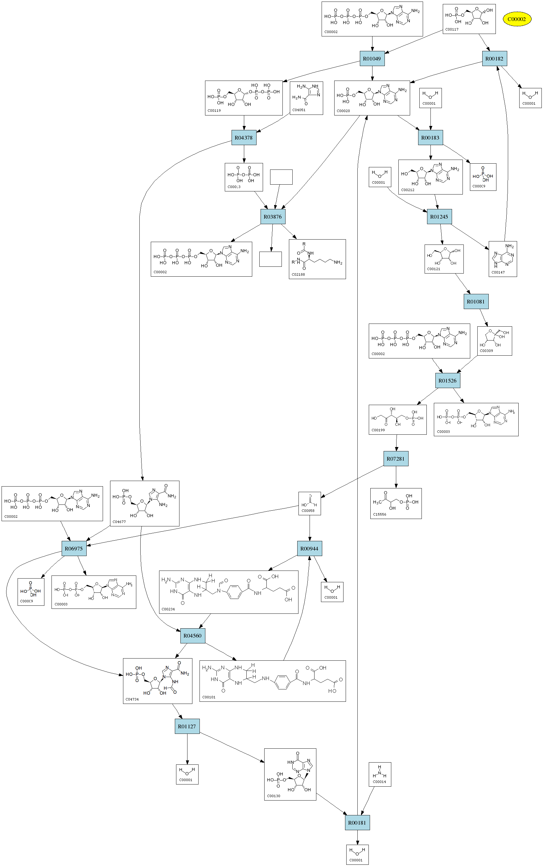 | RP08184 | R04560 | 0 | 1-(5'-Phosphoribosyl)-5-amino-4-imidazolecarboxamide; + 10-Formyltetrahydrofolate; <=> 1-(5'-Phosphoribosyl)-5-formamido-4-imidazolecarboxamide; + Tetrahydrofolate; |