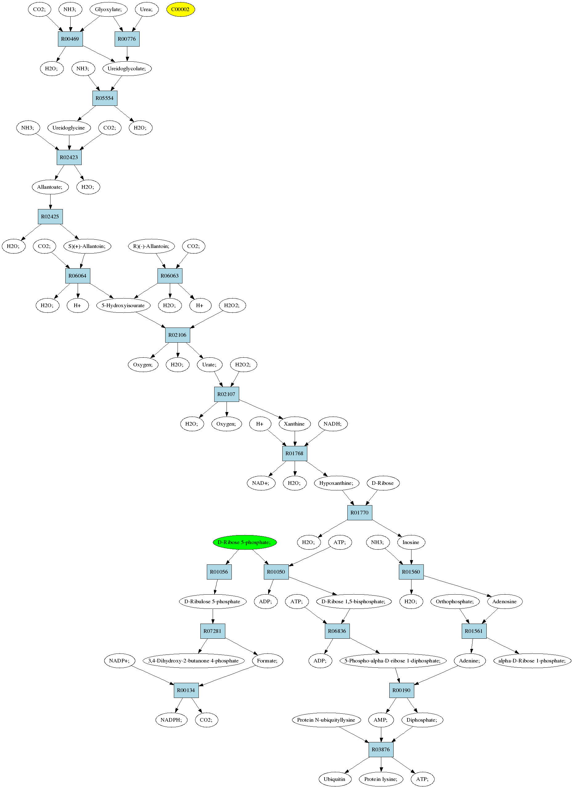 | RP10961 | R06836 | 0 | ATP; + D-Ribose 1,5-bisphosphate; <=> 5-Phospho-alpha-D-ribose 1-diphosphate; + ADP; |