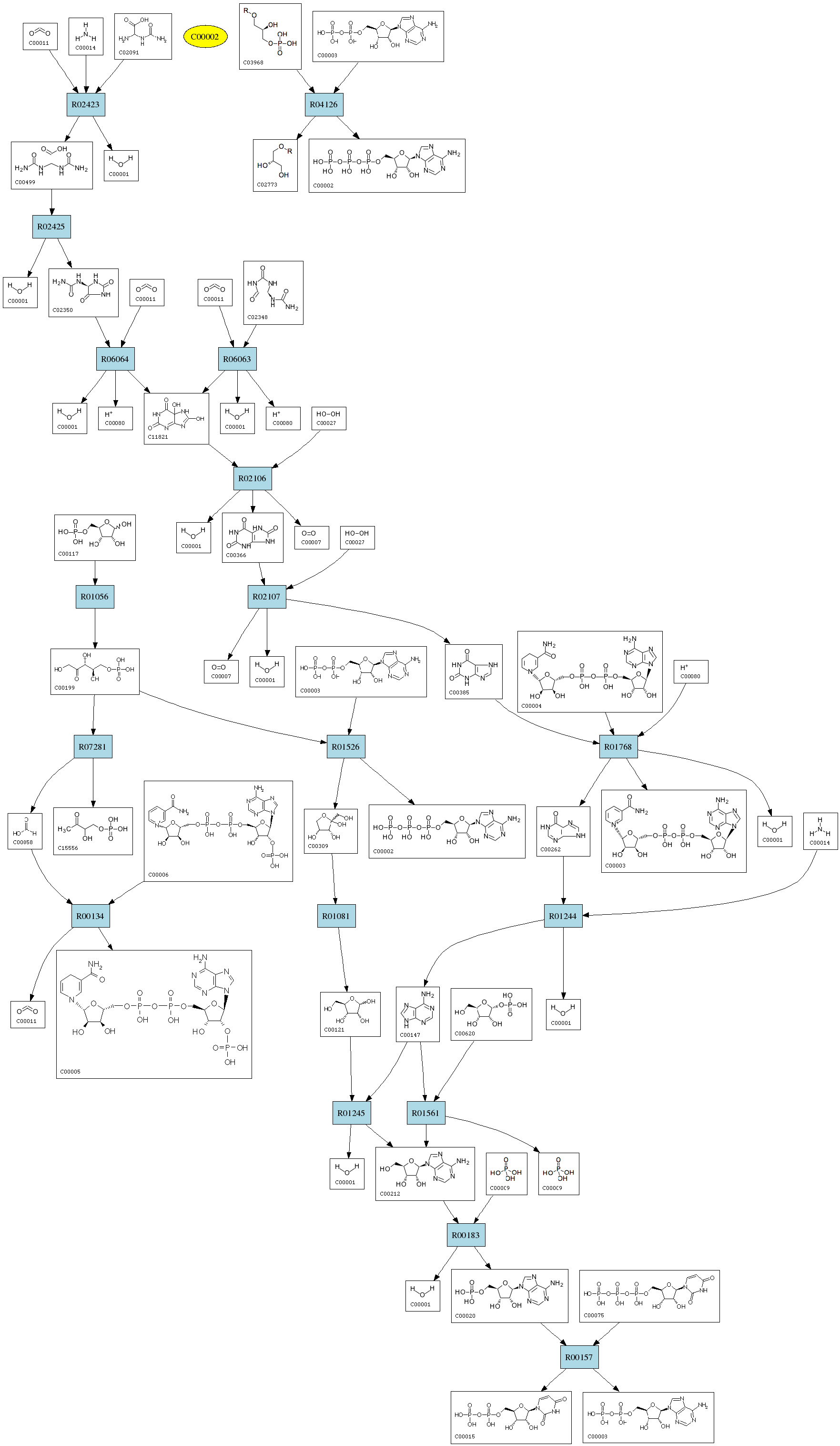 | RP01385 | R01245 | 0 | Adenosine + H2O; <=> D-Ribose + Adenine; |