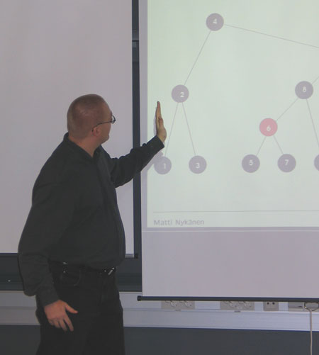 Matti Nykänen piti dosenttikoeluennon aiheesta Punamustan puun perusoperaatio. |