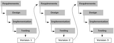 Project models that are based on incremental development, such as the evolutionary model (Figure 2.2) and the Extreme Programming (XP) model [Beck00] (Figure 2.3), have tried to solve the problem of late corrections by implementing the software in stages, piece by piece. At the beginning, the project group designs and codes only a small part of the features, which are then tested. Then more features are designed, coded and tested, until the whole system is ready. The requirements gradually become evident as the system is implemented and the client begins to see what the system will be like and how it will work; "I can't tell you what I want, but I'll know when I see it" [Boehm88, p. 63].